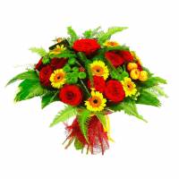 Букет «Долгожданное счастье» прекрасно составлен из подсолнухов, ромашек и амбреллы, которая достаточно оригинально и тонко подчеркивает прелесть композиции своими вычурными продолговатыми листками. Этот букет, принесенный в подарок близким, поможет выразить все тепло и радость встречи после долгой разлуки и без лишних слов покажет вашу любовь.